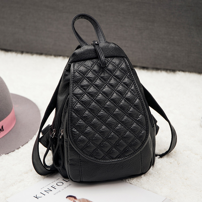 雙肩包女韓版pu軟皮時尚個性百搭多用菱格女士包包新款潮背包