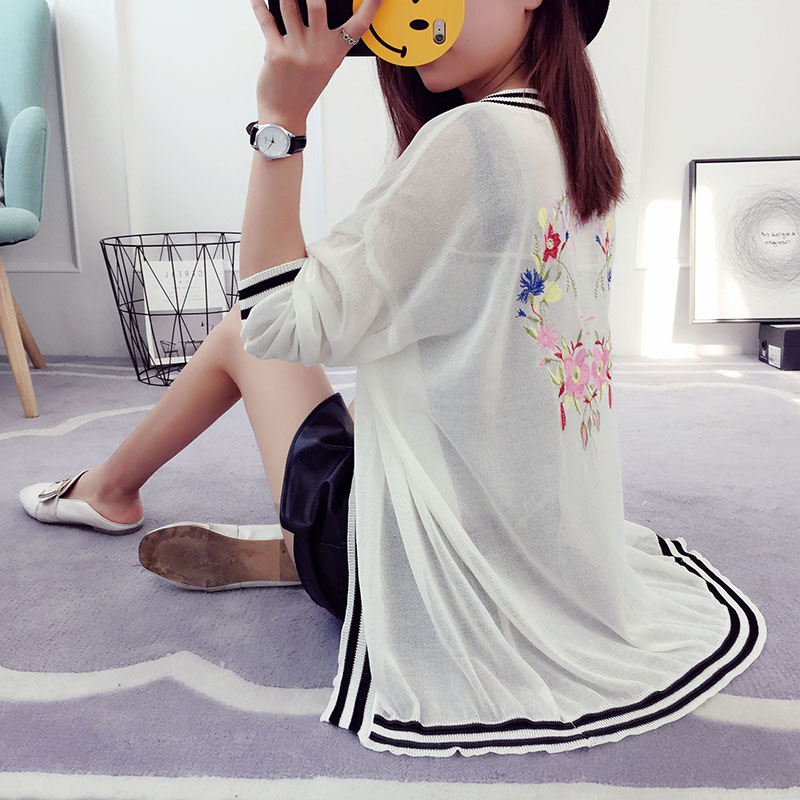 / 冰絲針織衫開衫女短款夏季薄款外套防曬衫外搭韓版寬松刺繡空調衫
