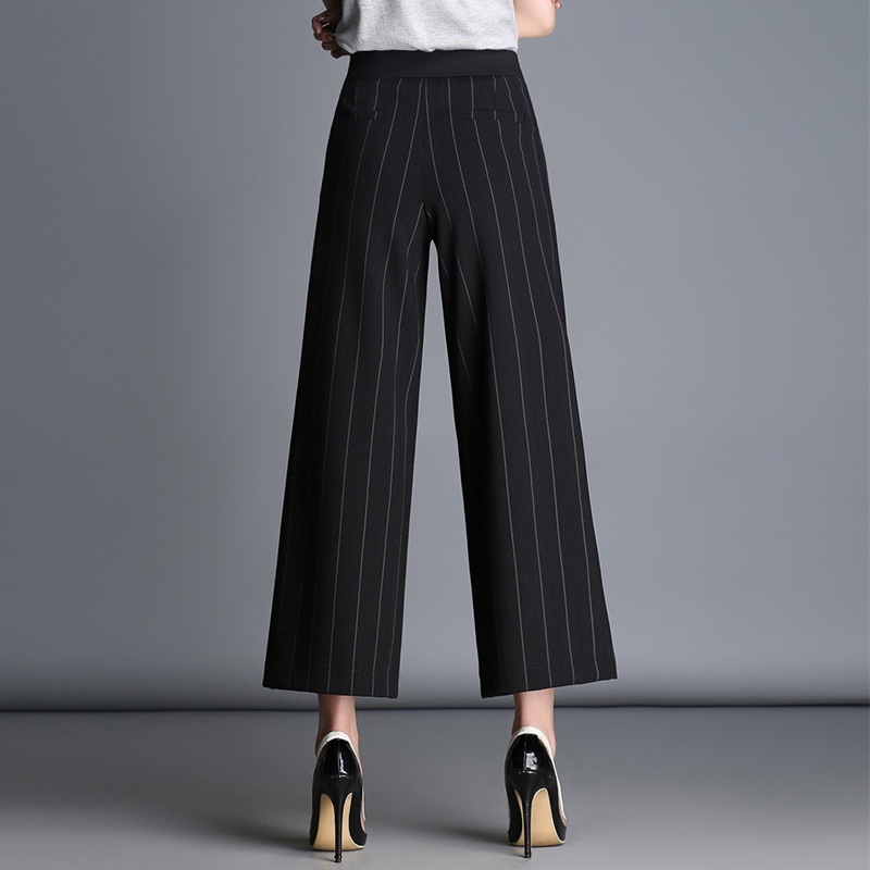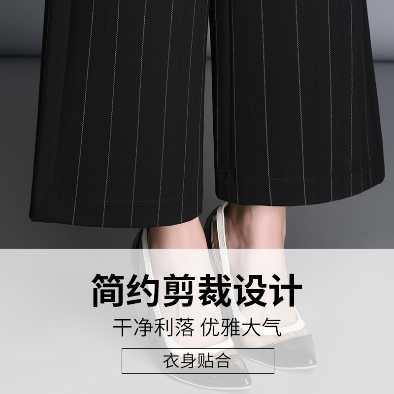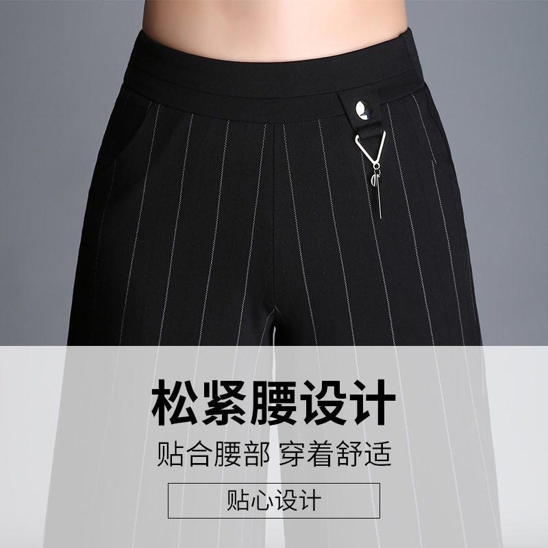 / 新款春季闊腿褲女九分高腰顯瘦直筒休閑褲條紋闊腳西裝寬腿褲