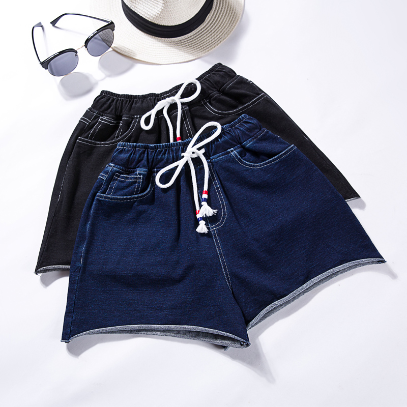 / 韓版松緊腰闊腿牛仔短褲女夏高腰寬松顯瘦休閑學生卷邊熱褲潮