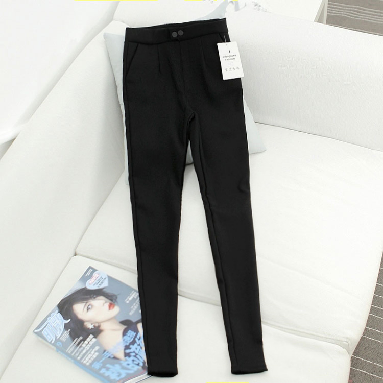 冬款韓版彈力顯瘦小腳褲女加絨打底褲外穿加厚黑色鉛筆褲長褲