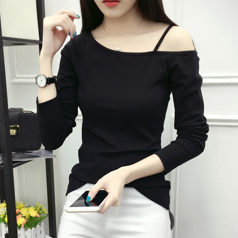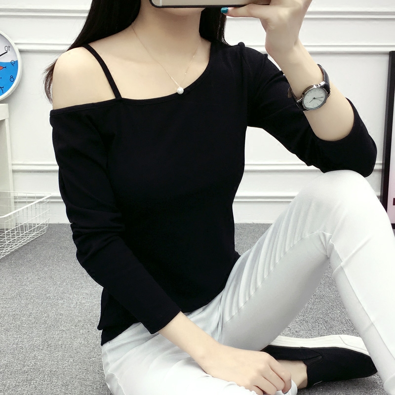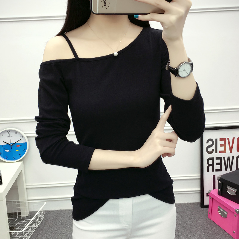 / 春裝新款長袖打底衫女T恤大碼顯瘦純棉寬松百搭上衣體恤衫