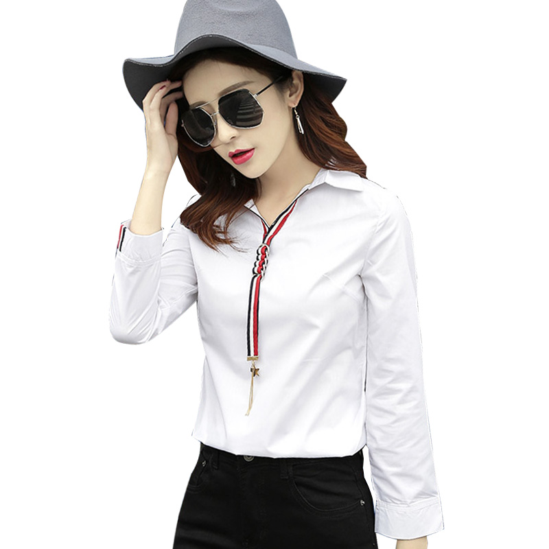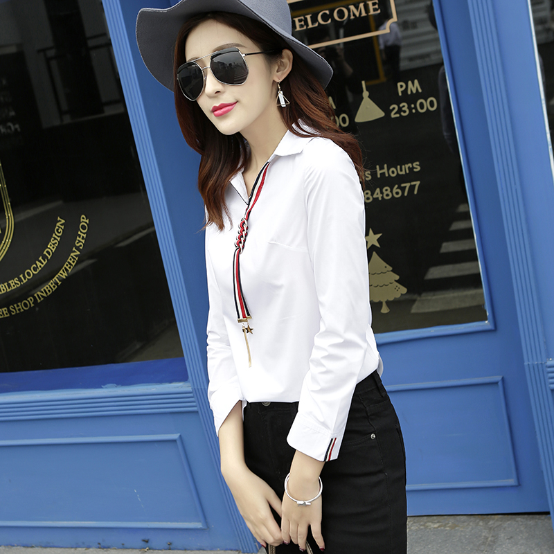 / 春白襯衫女長袖上衣九分袖韓版簡約修身學生純棉打底襯衣學院風夏