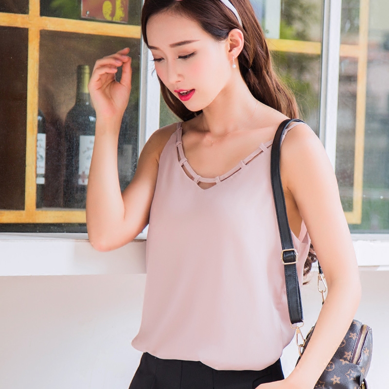 / 秋裝新款外穿雪紡背心女吊帶大碼寬松修身顯瘦打底衫女潮