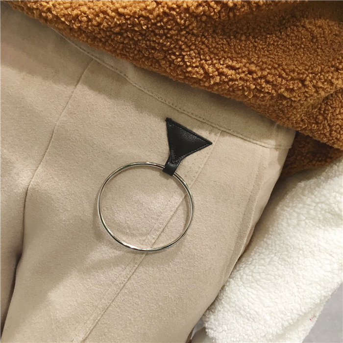 韓國chic秋冬款個性圓環裝飾加厚毛呢休閑褲長褲女學生哈倫褲