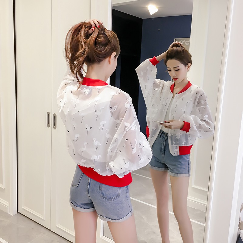 / 防曬衣女夏季新款透視歐根紗韓版長袖寬松百搭短款外套棒球服