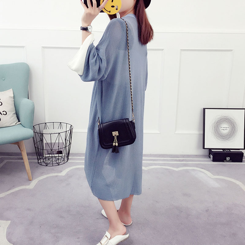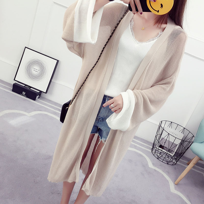 / 慵懶風針織開衫外搭女新款夏季薄款中長款披肩冰絲防曬空調衫