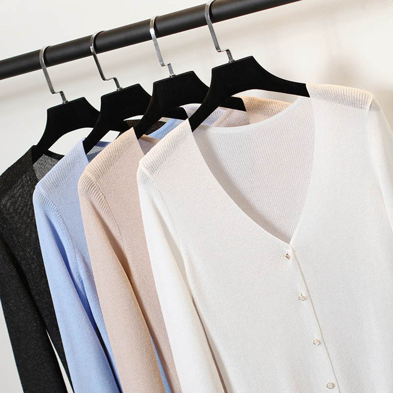 / 冰絲防曬開衫女夏薄短款長袖針織外套女夏季薄款外搭空調衫女開衫