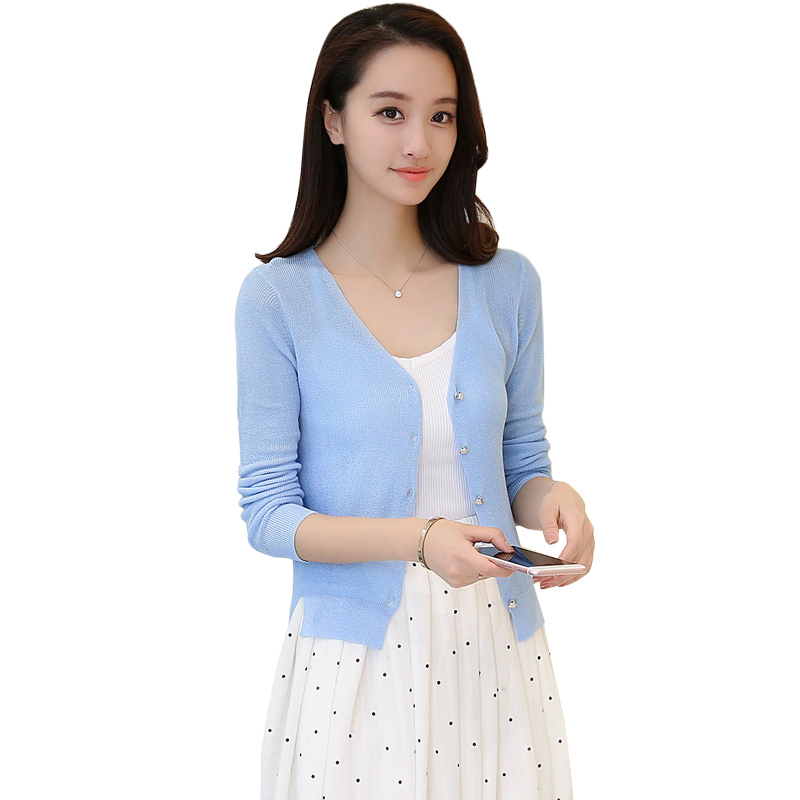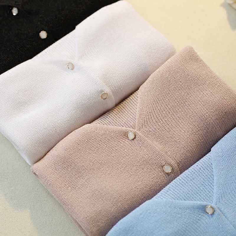 冰絲防曬開衫女夏薄短款長袖針織外套女夏季薄款外搭空調衫女開衫