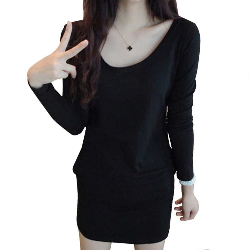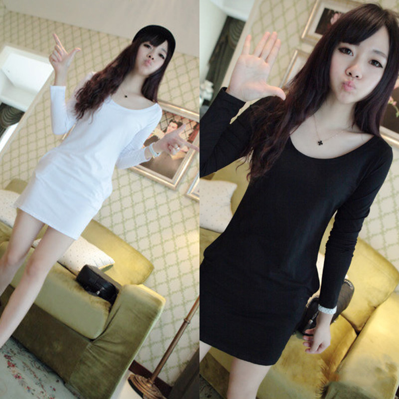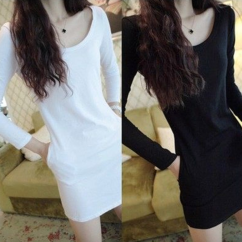 / 韓版中長款內搭打底衫學生純色長袖T恤女春裝上衣顯瘦修身體恤裙
