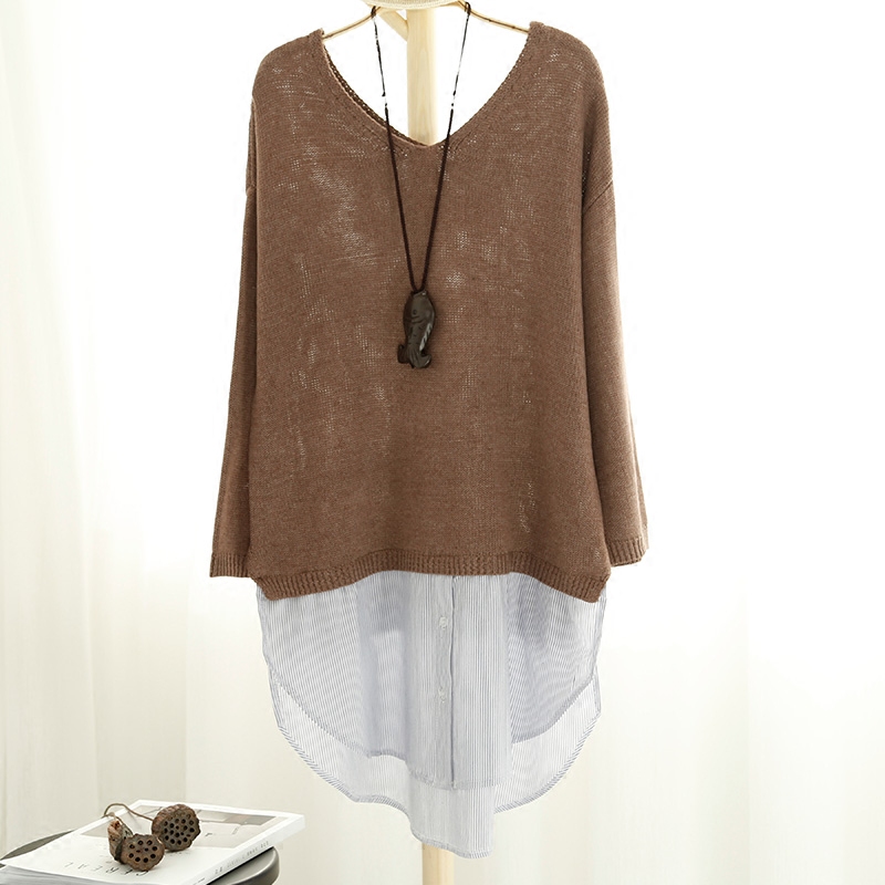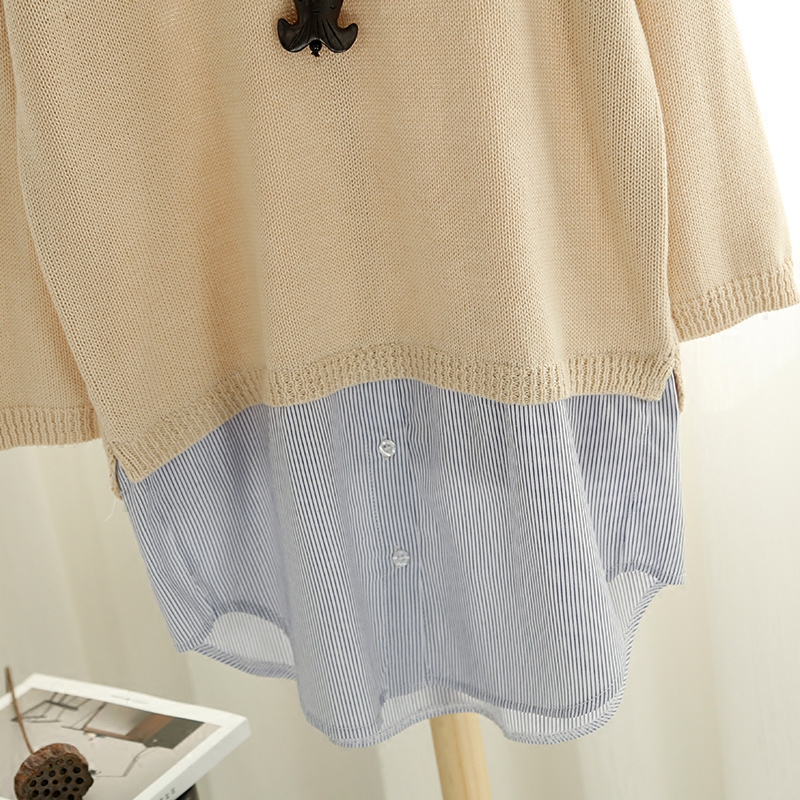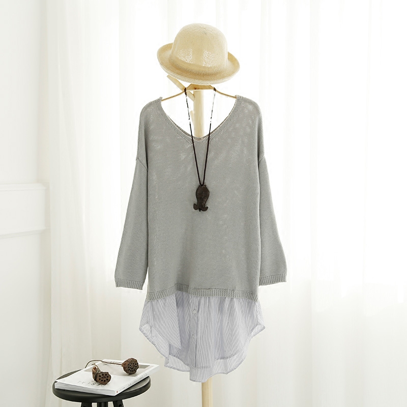 / 韓版套頭毛衣女寬松純色假兩件針織衫v領長袖打底衫春裝新款