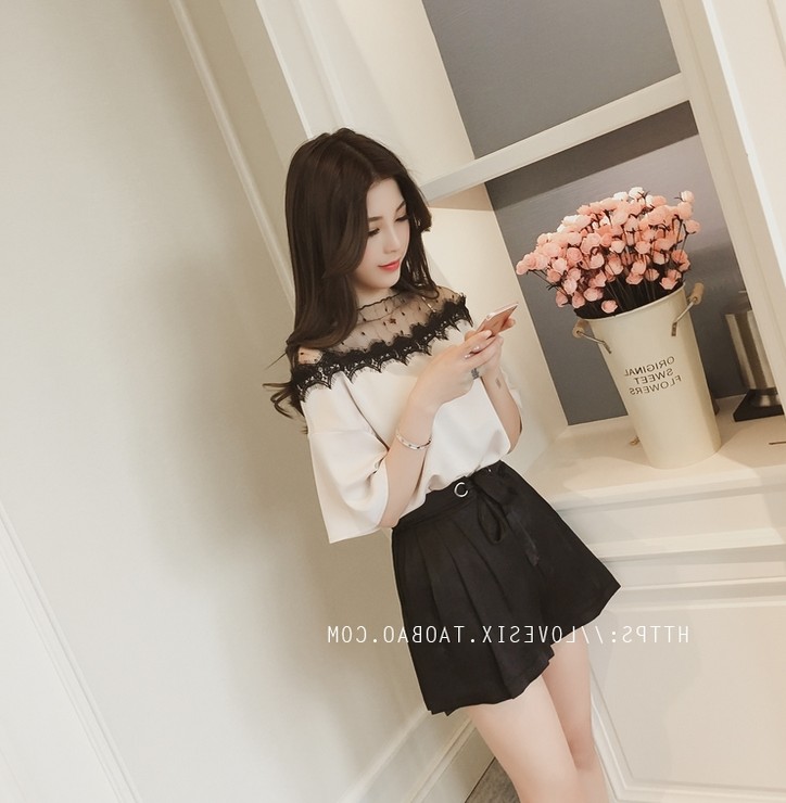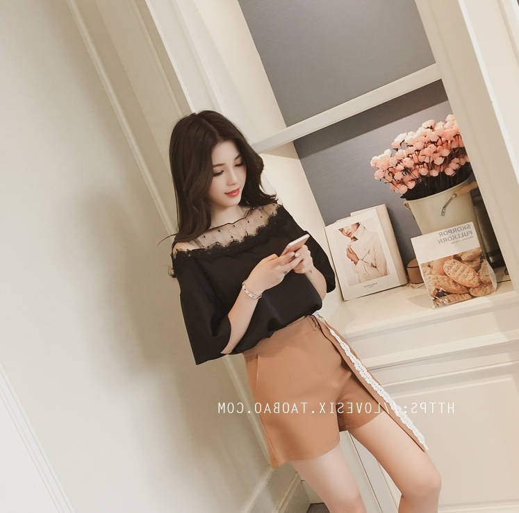 / 女裝春夏新款韓版學生寬松雪紡衫套裝女休閑闊腿褲短褲兩件套