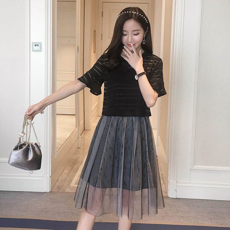 / 夏季新款女裝韓版罩衫吊帶裙兩件套中長款顯瘦短袖連衣裙套裝