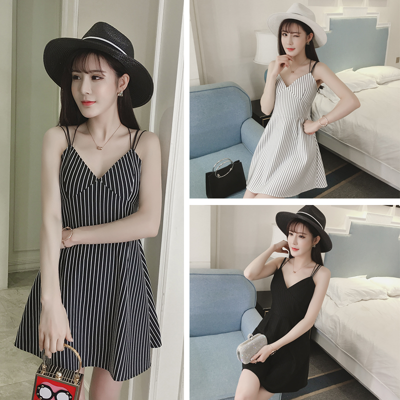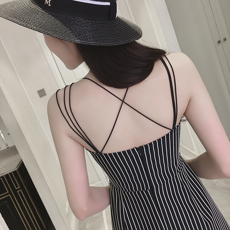 / 春夏新款女裝韓版派對小黑裙修身顯瘦交叉吊帶抹胸連衣裙禮服