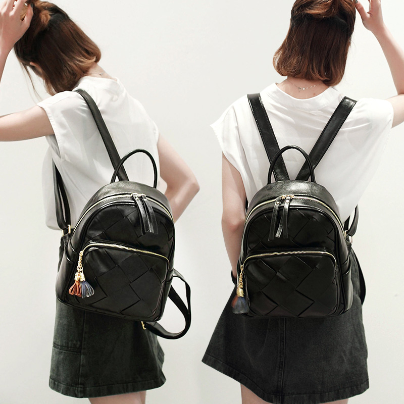 / 編織雙肩包女韓版時尚個性百搭學生校園風女士包包新款潮背包