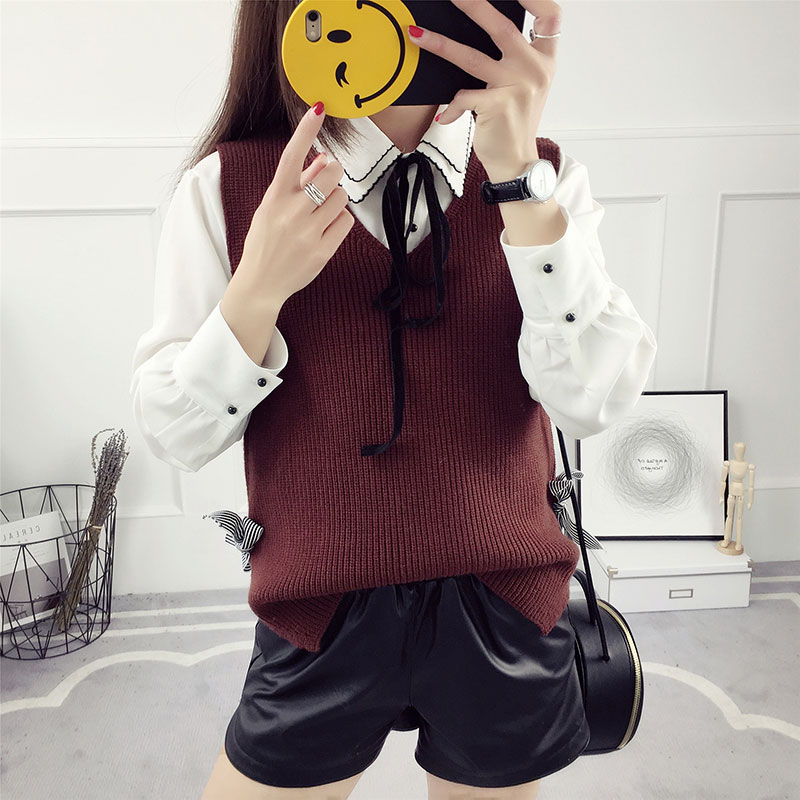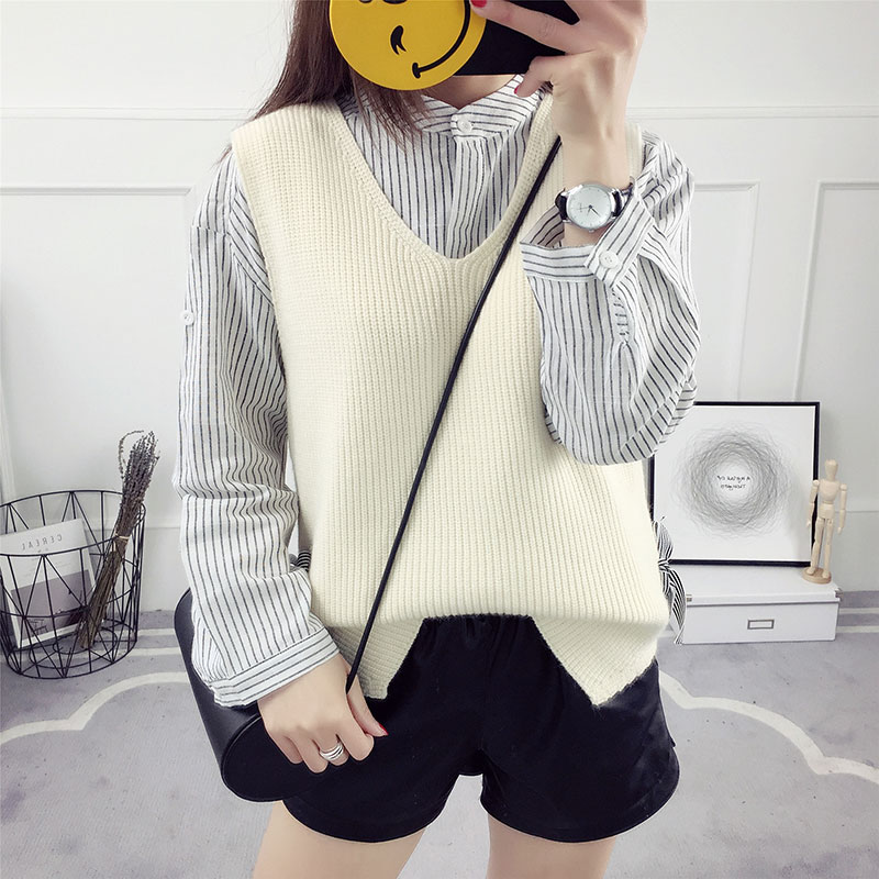 / 春裝毛衣馬甲女韓版V領短款寬松顯瘦套頭毛線衣百搭春秋針織背心