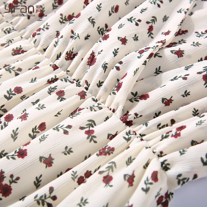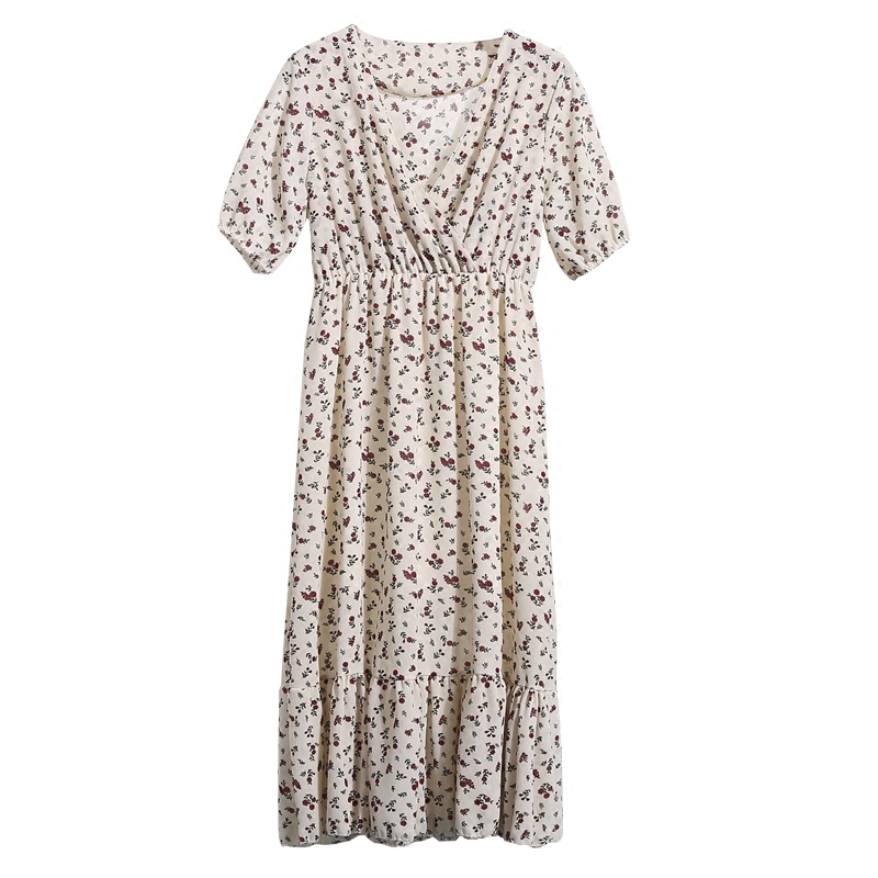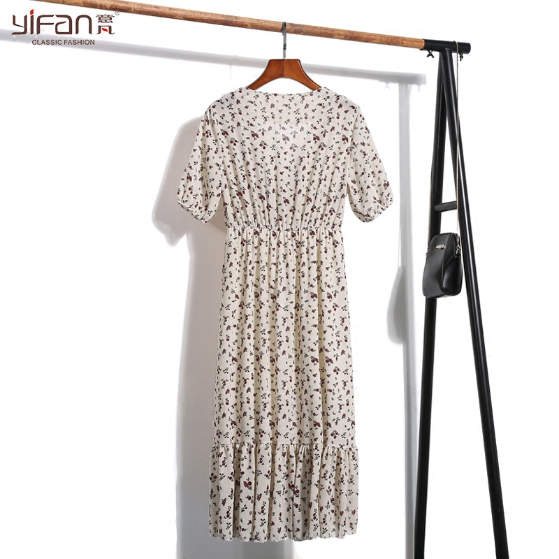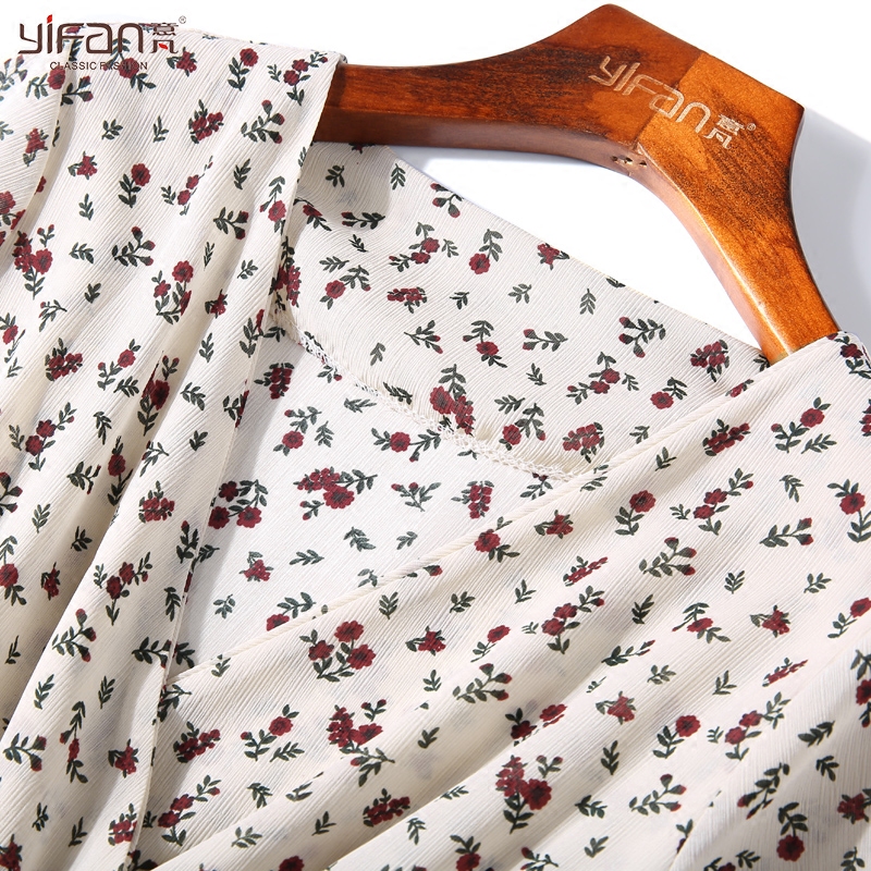 / 夏裝新款女裝小清新短袖碎花裙子甜美V領印花雪紡連衣裙顯瘦