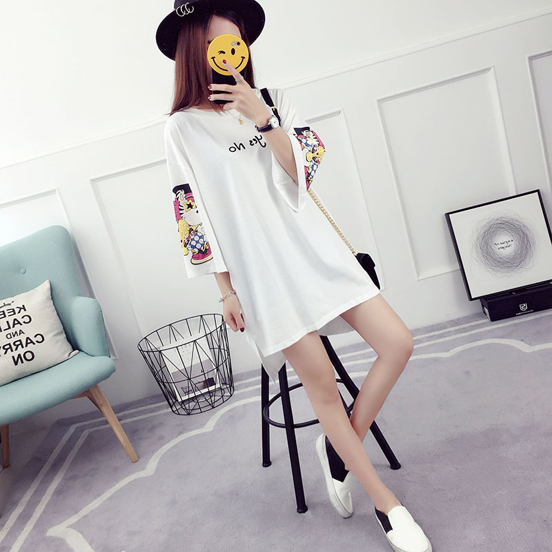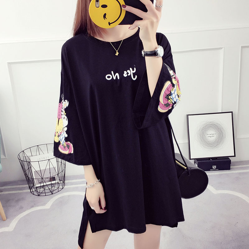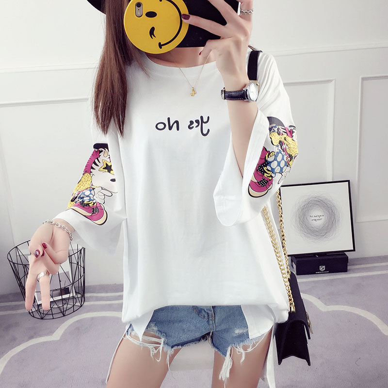 / 夏裝新款韓版百搭學生寬松上衣服中長款t恤女印花中袖打底衫