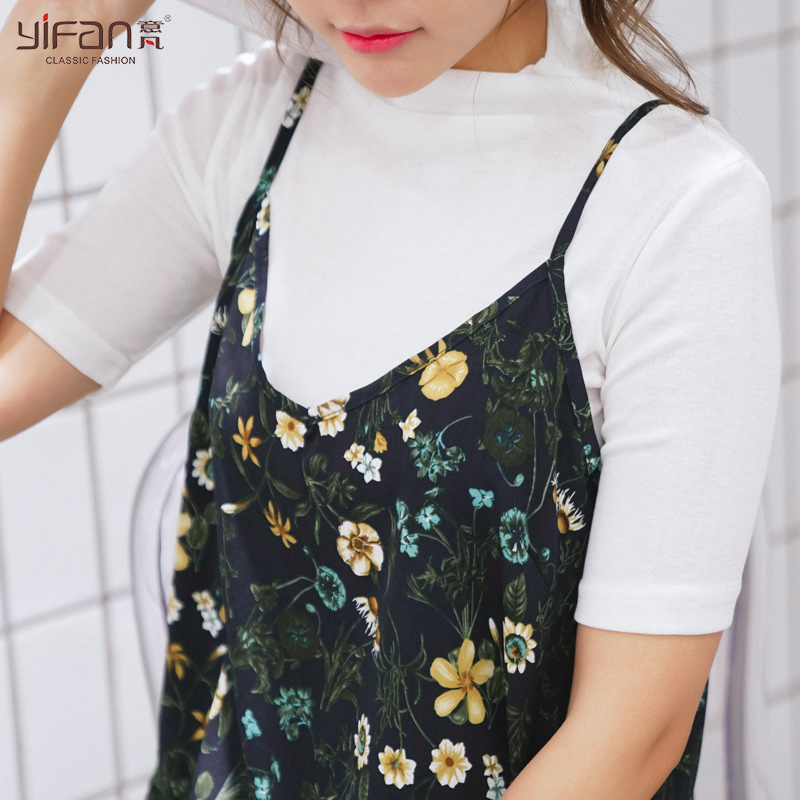 / 春夏韓版雪紡吊帶裙女碎花長裙寬松v領復古顯瘦中長款打底連衣裙