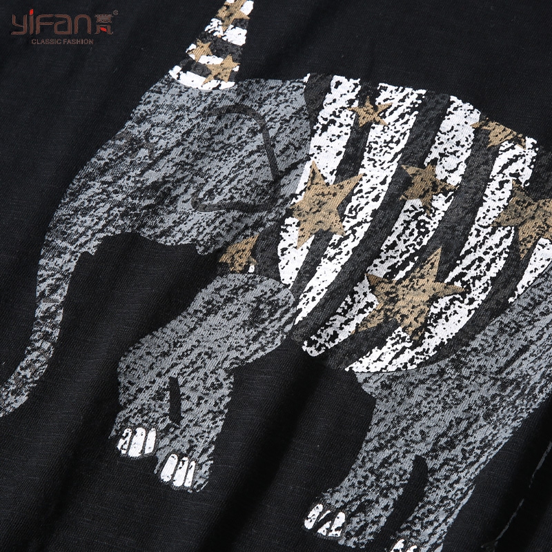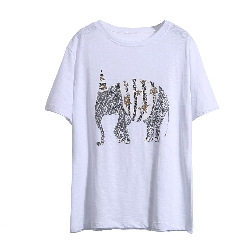 / 初夏寬松短袖純色竹節棉女裝T恤韓版復古大象印花上衣體恤新