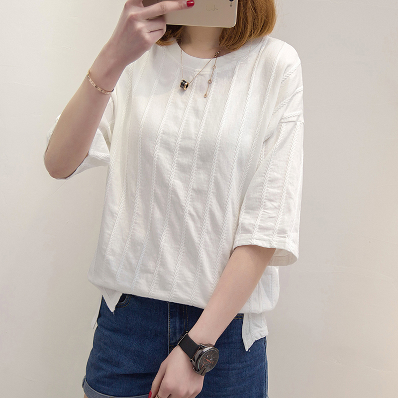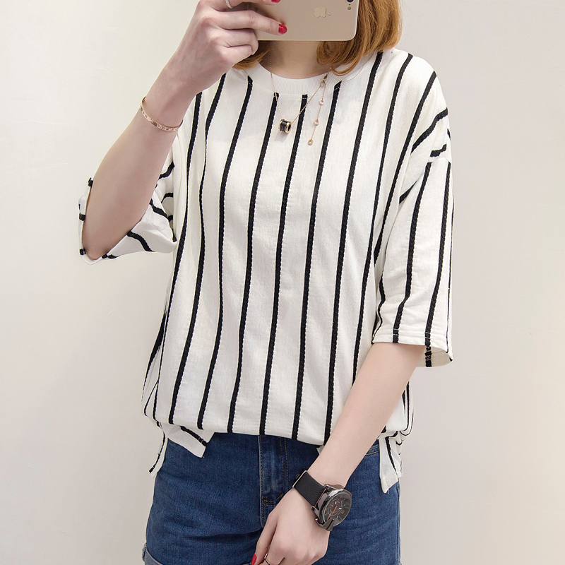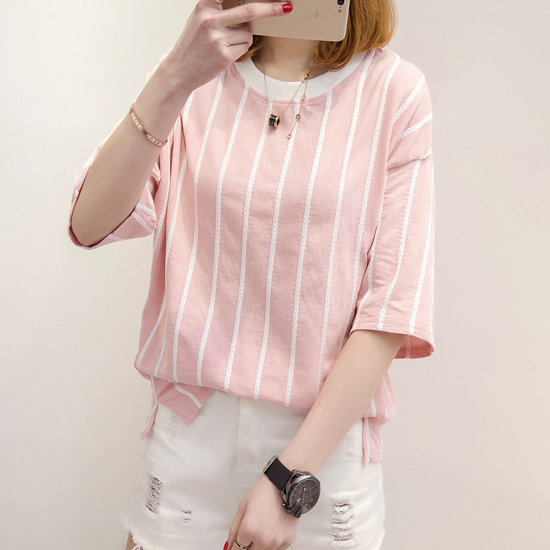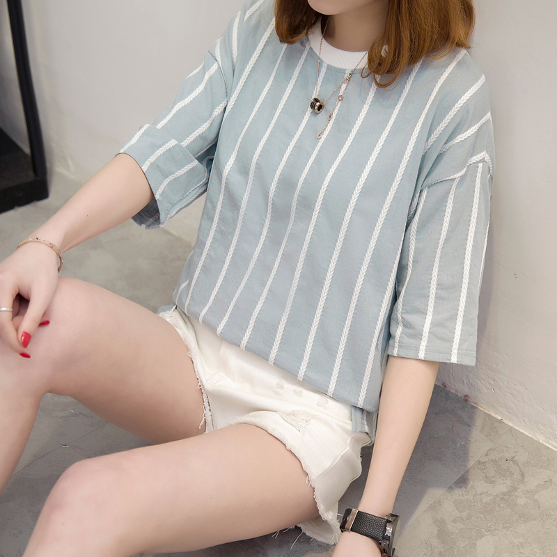 夏季女裝新款條紋短袖t恤女寬松韓版百搭學生打底衫上衣女夏