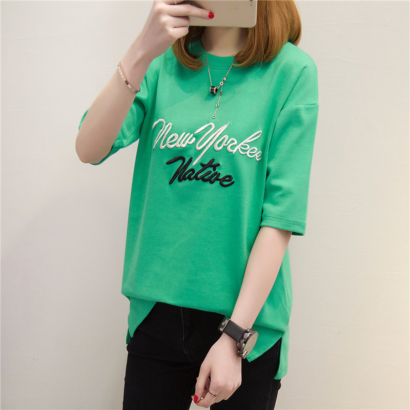夏裝女裝短袖女夏季韓版寬松百搭純色t恤中長袖上衣服字母潮