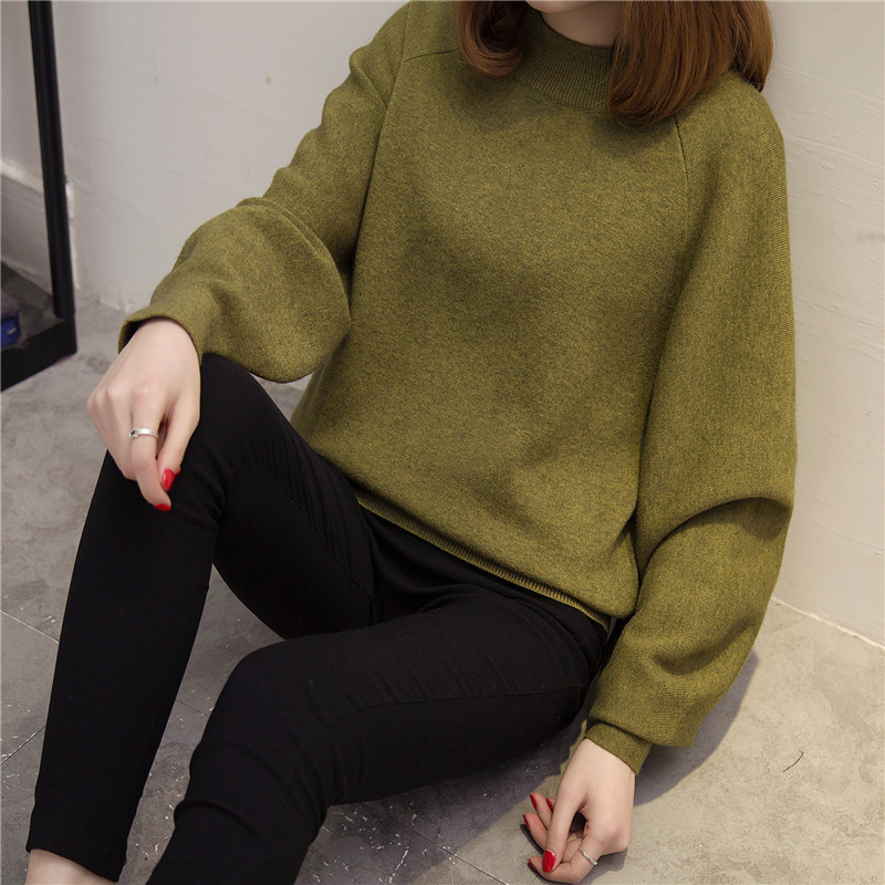 女裝冬裝新款潮圓領針織衫女套頭韓版純色毛衣女秋冬打底衫