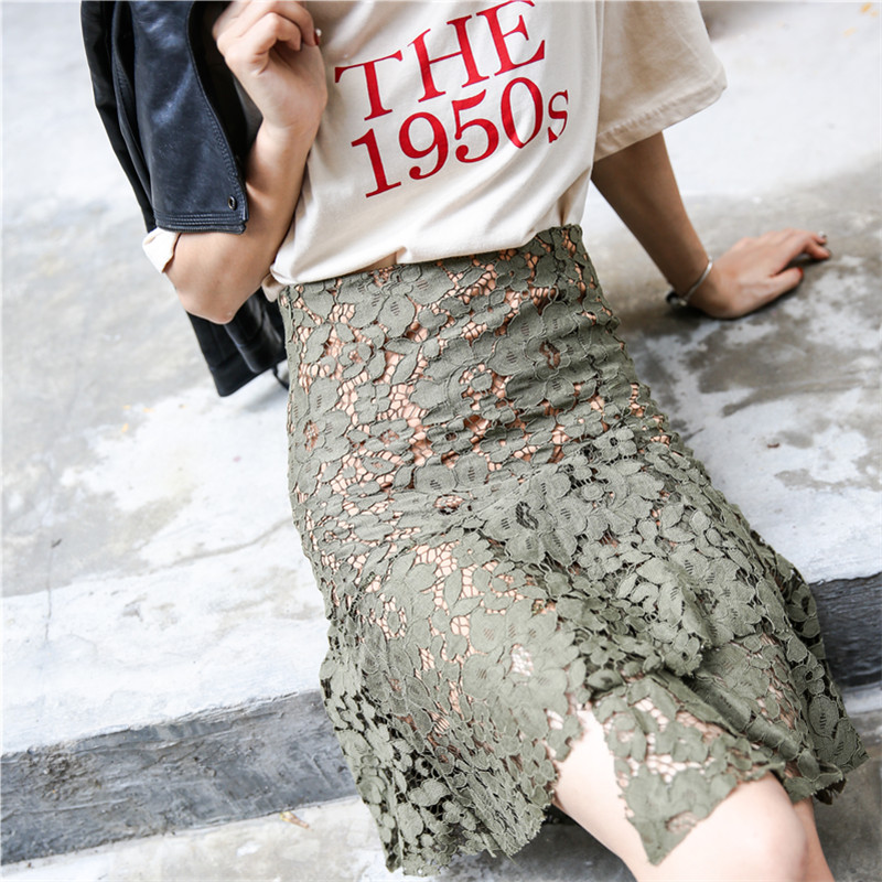 / 韓版高腰蕾絲包臀裙半身裙女荷葉邊魚尾裙不規則短裙A字裙半裙夏