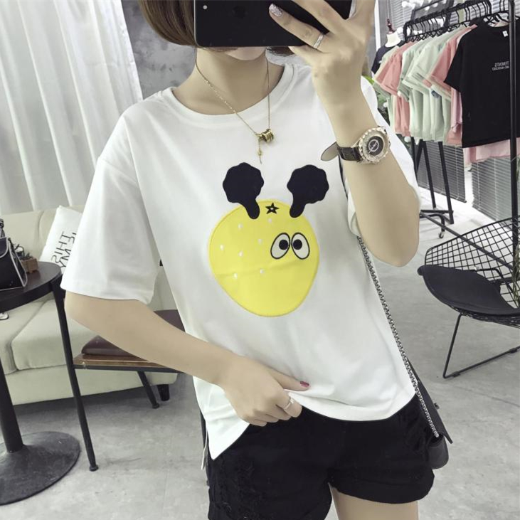 / 韓版夏季卡通閨蜜裝上衣女士寬松圓領大碼新款短袖t恤女學生打底