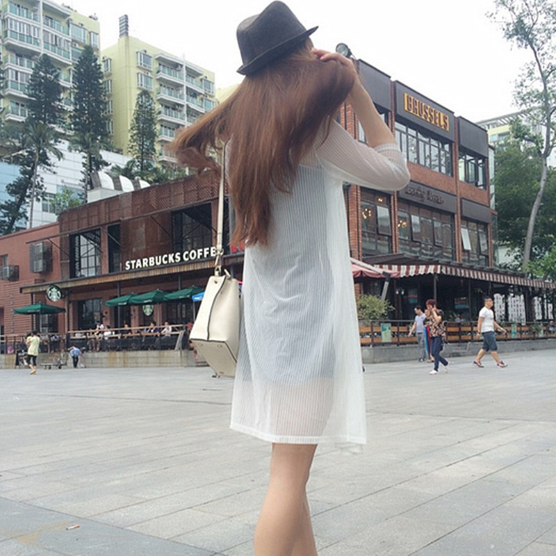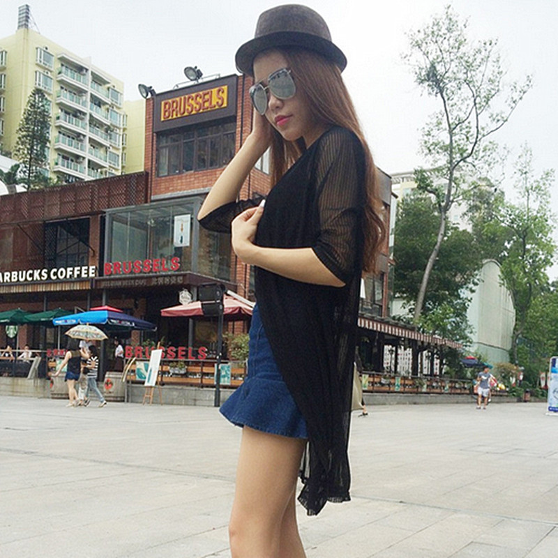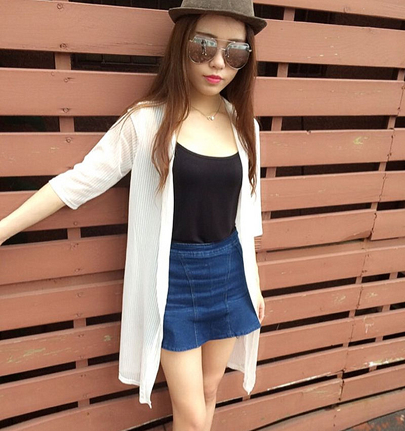 / 中長款防曬衣中袖女夏超薄雪紡衫網紗開衫空調衫披肩外套女式夏裝