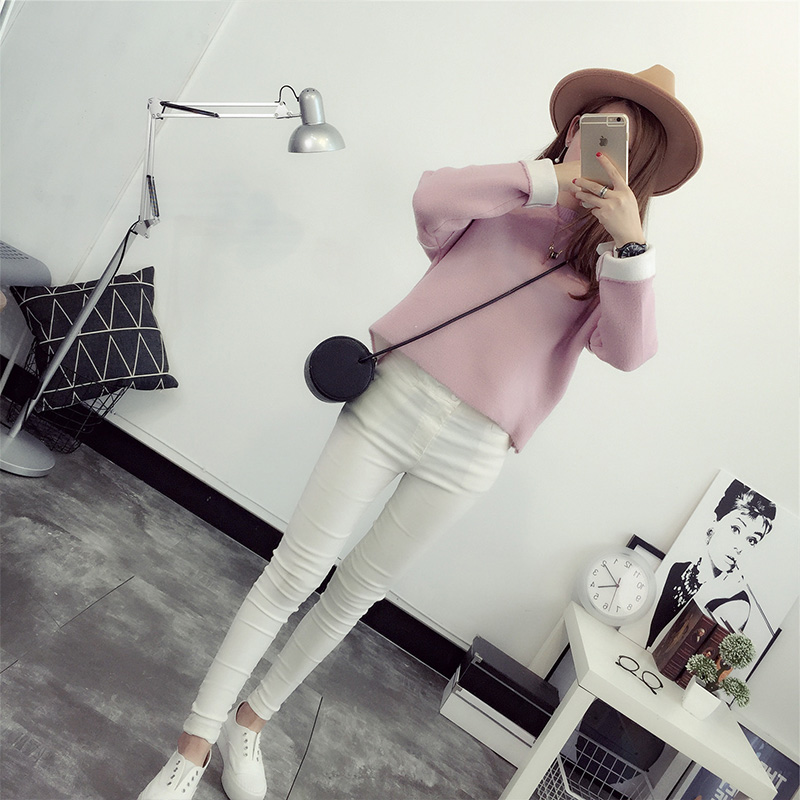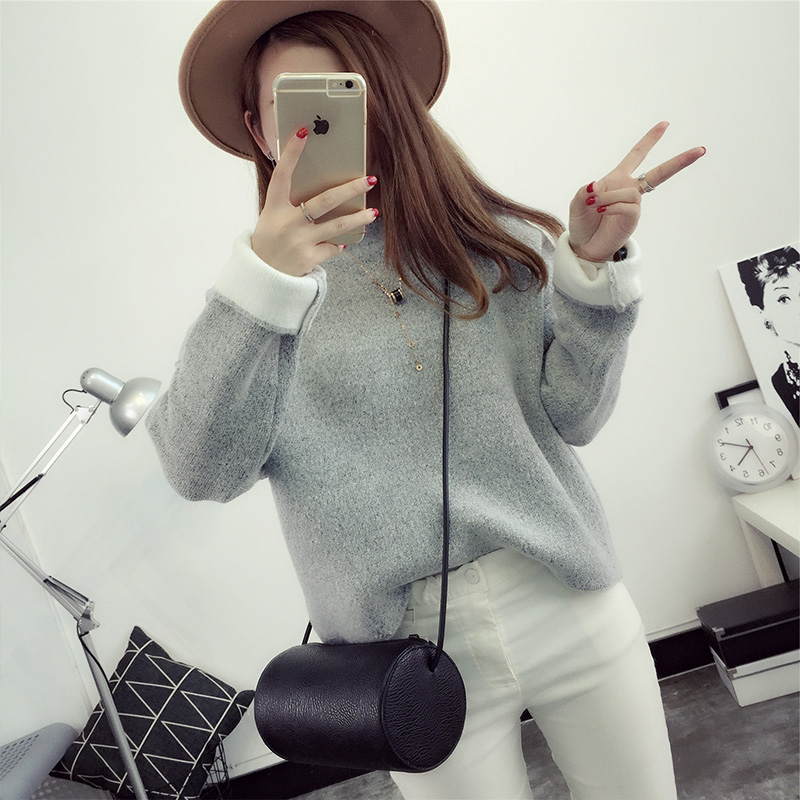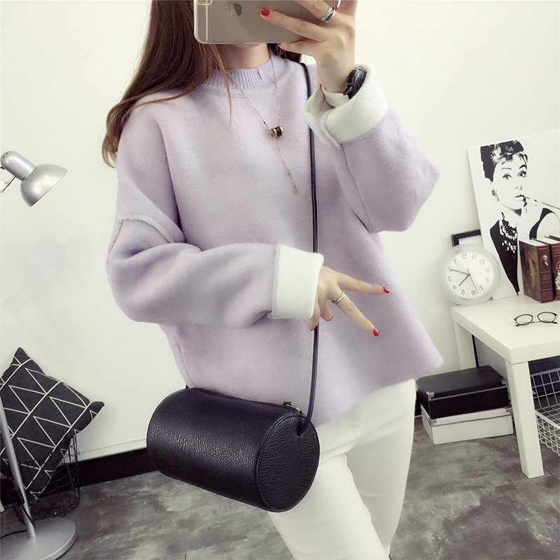 / 套頭毛衣女秋冬韓版短款寬松針織衫純色外套女裝秋裝新款潮