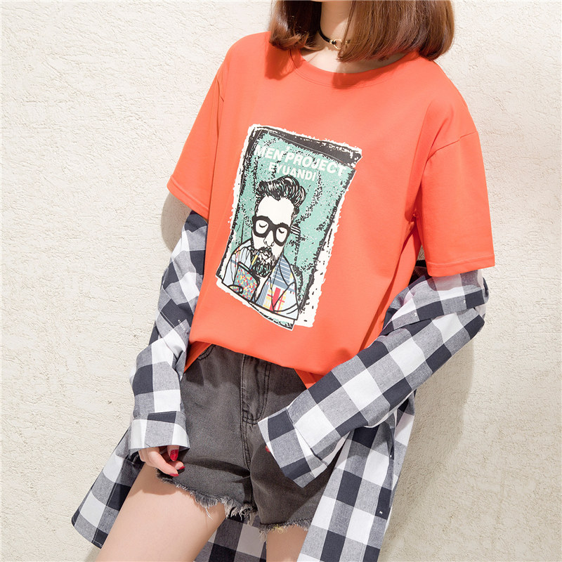 復古港味t恤女寬松bf風小清新心機上衣服體恤短袖女夏裝新款