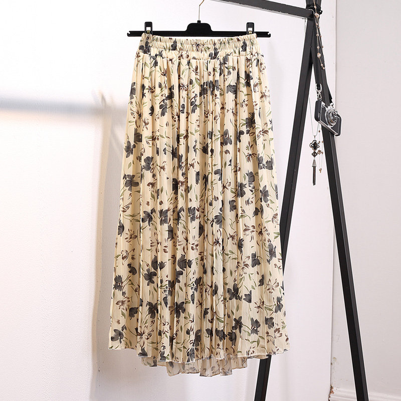 中長款碎花雪紡仙女百褶裙夏季新款女波西米亞沙灘半身長裙子