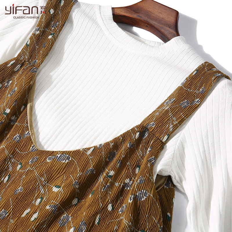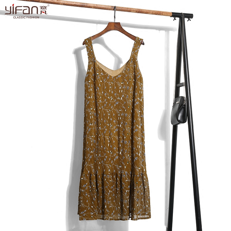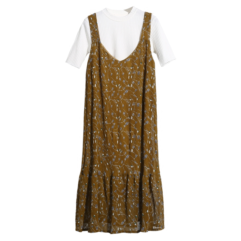 / 春裝新款韓國復古荷葉邊裙擺長款打底裙女雪紡碎花V領吊帶連衣裙