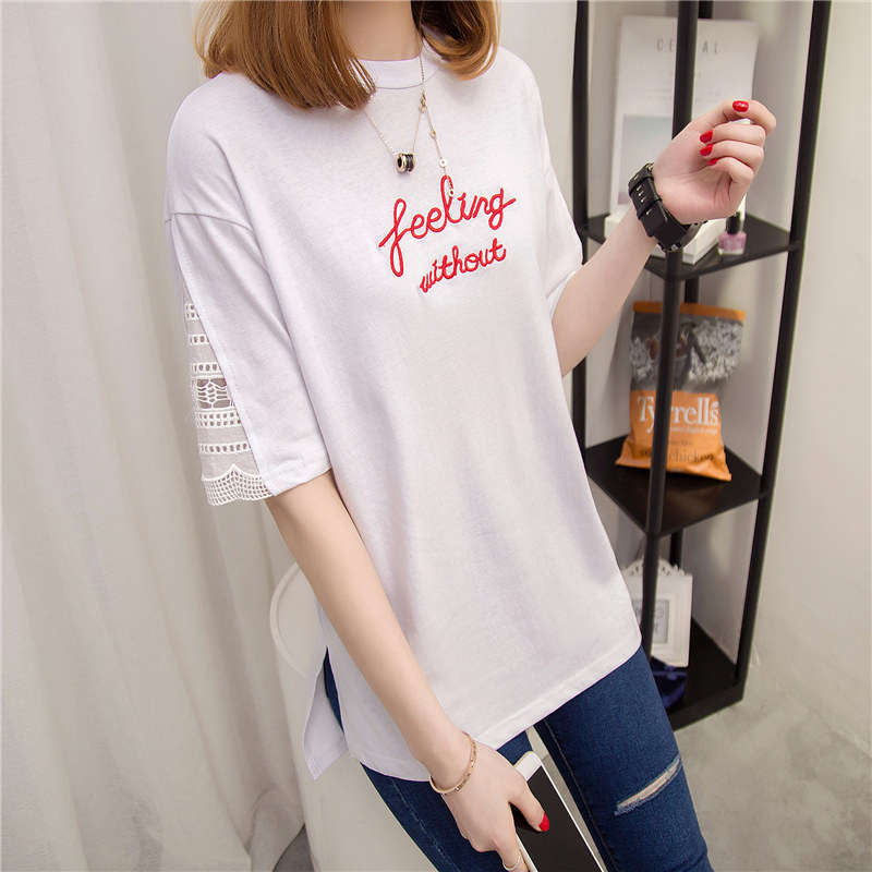 新款韓版春季女裝時尚個性潮中長拼接短袖t恤女夏裝小衫打底