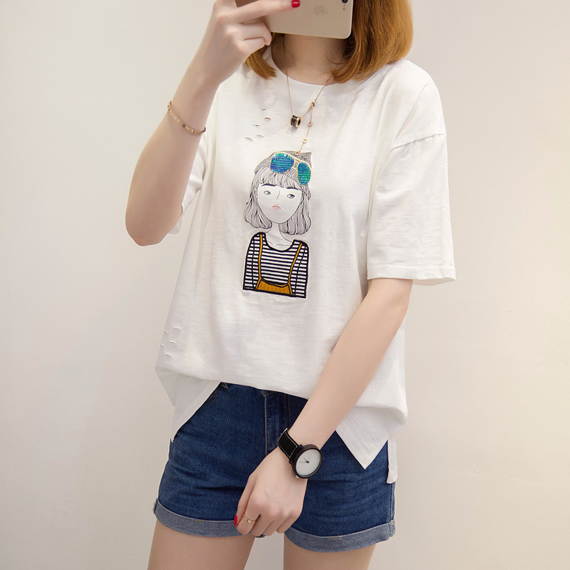 短袖t恤女寬松夏裝新款女裝白色體恤衫韓版百搭休閑上衣女夏
