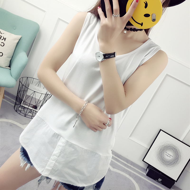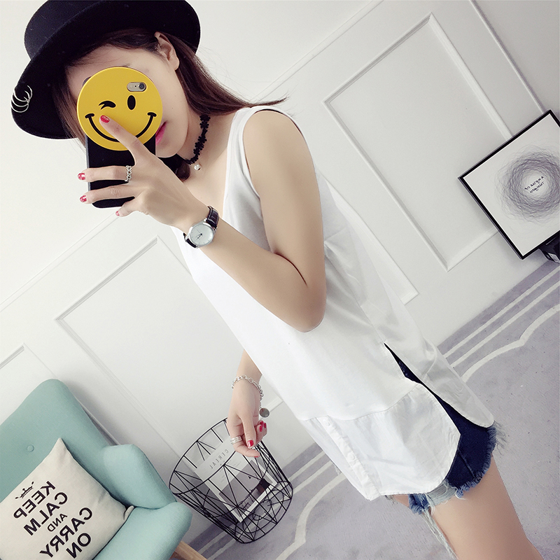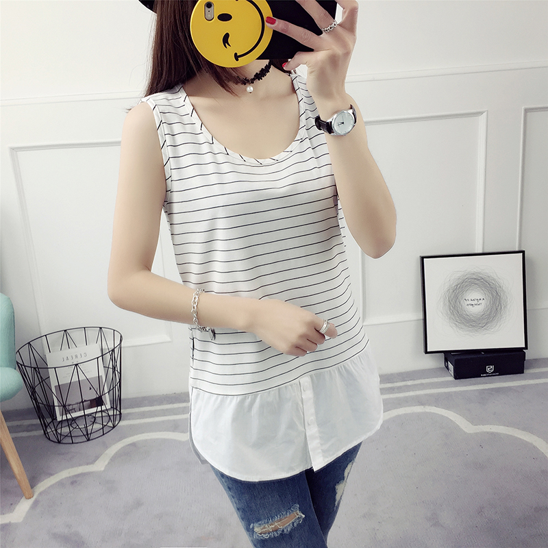 / 條紋無袖t恤女夏季吊帶背心中長款寬松上衣內搭打底衫百搭坎袖裙
