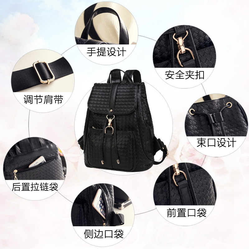 編織雙肩包女韓版pu軟皮背包時尚個性百搭歐美女士包包新款潮