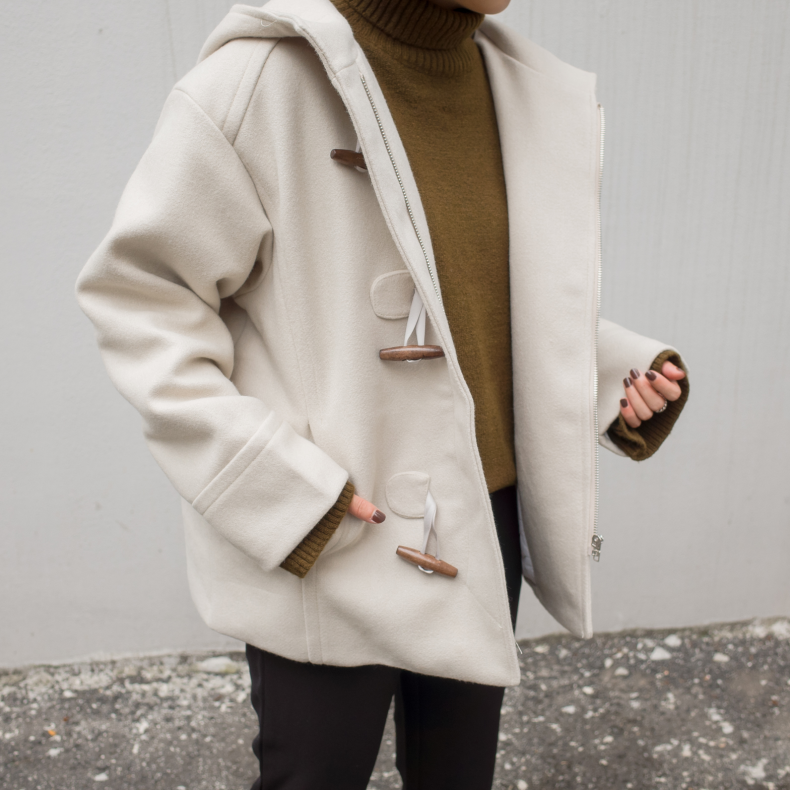 復古的學院風牛角扣大衣不張揚,但絕不平庸