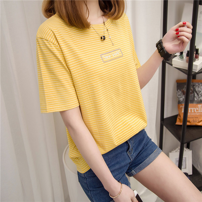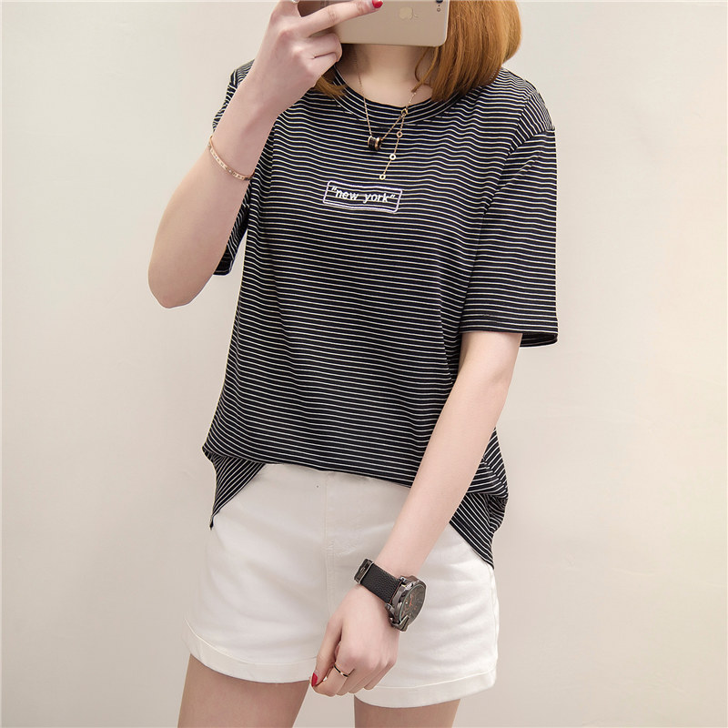 / 條紋短袖t恤女寬松上衣韓版體恤女夏學生百搭女裝春裝新款潮