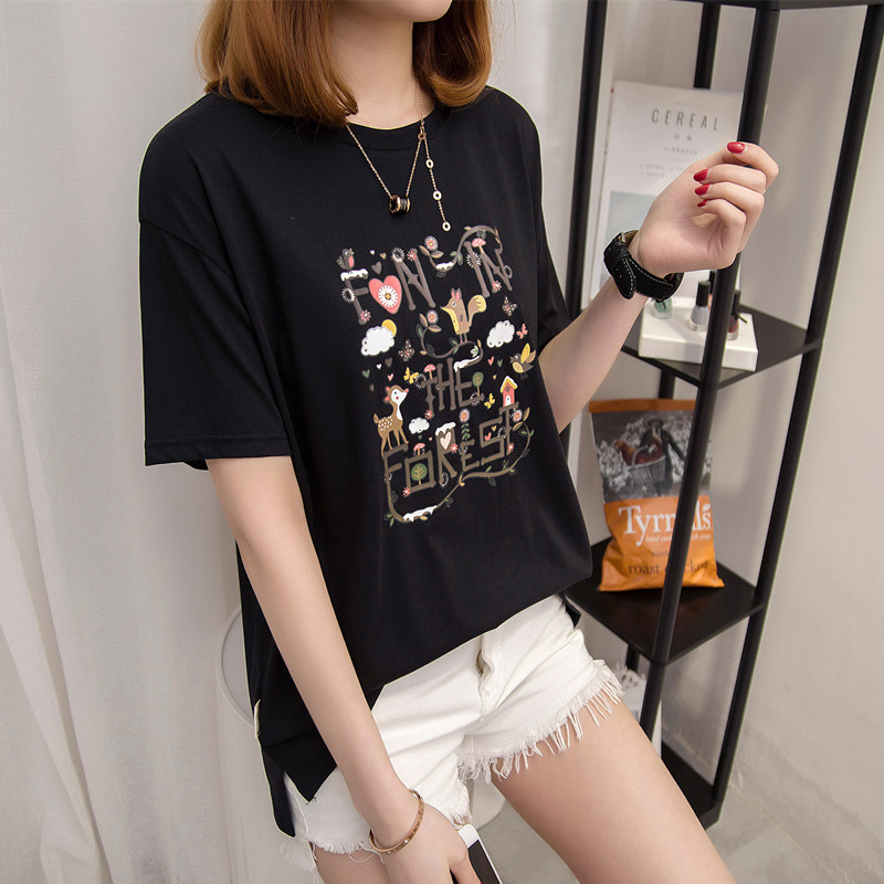 短袖上衣女夏新款女裝卡通白色t恤女寬松韓版體恤小衫百搭潮