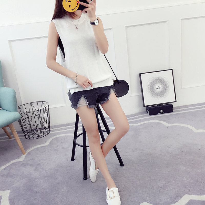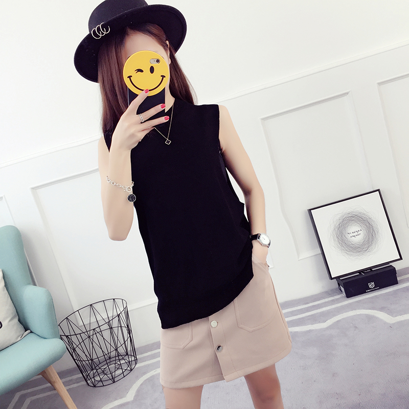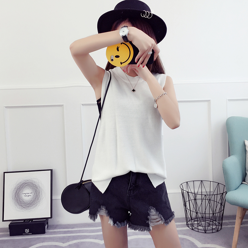 / 毛衣馬甲女春秋新款套頭寬松上衣針織短袖背心冰絲打底衫薄款