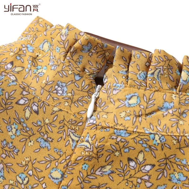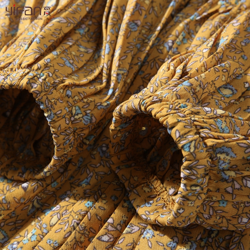 / 春裝雪紡松緊腰長款連衣裙女裝新款長袖百褶裙碎花裙打底裙新
