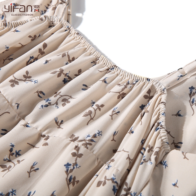 / 新款復古雪紡連衣裙女荷葉邊V領中長款顯瘦百褶裙碎花吊帶裙夏季