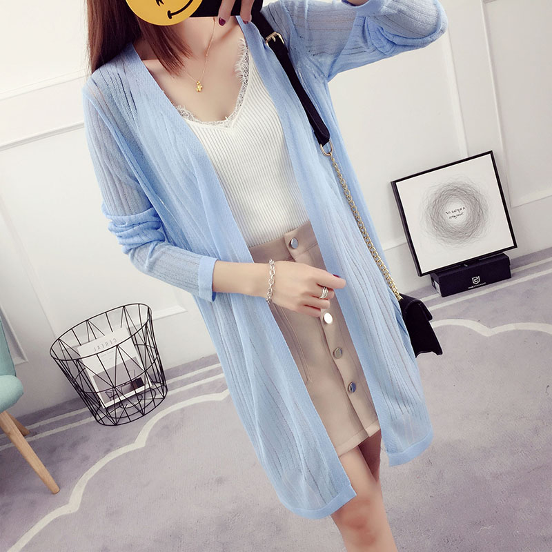 / 針織開衫女中長款長袖新款韓版外搭薄款外套夏季防曬衣空調衫