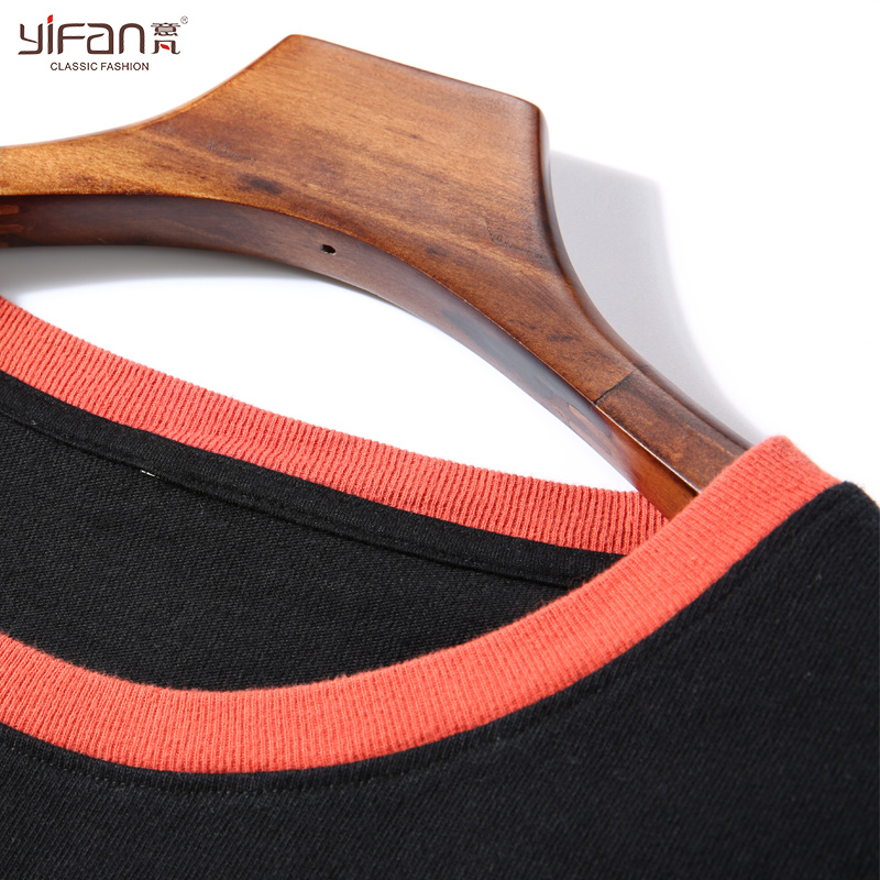 / 春夏新款卡通印花撞色袖T恤寬松套頭女裝短款短袖打底上衣