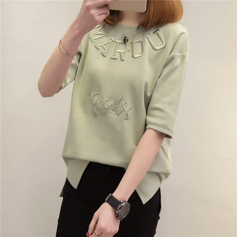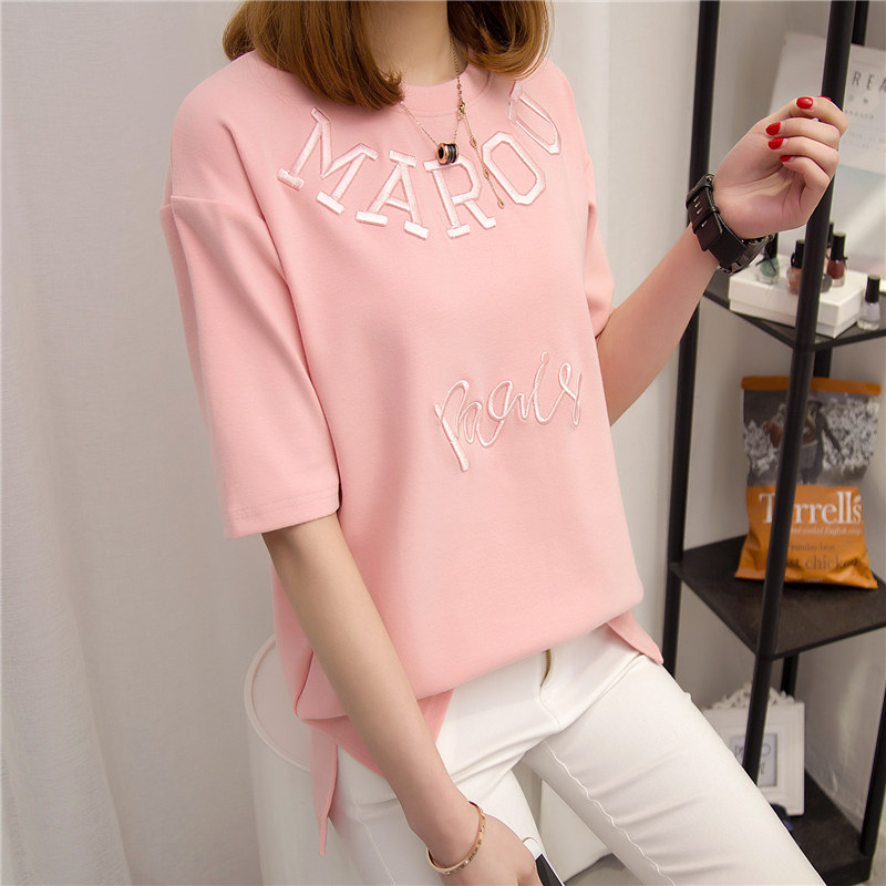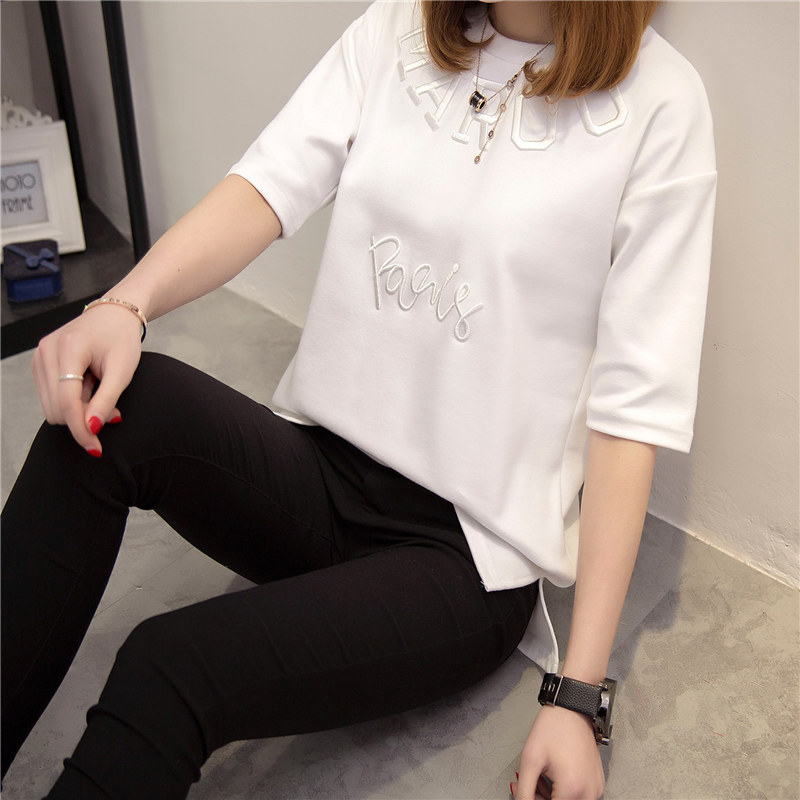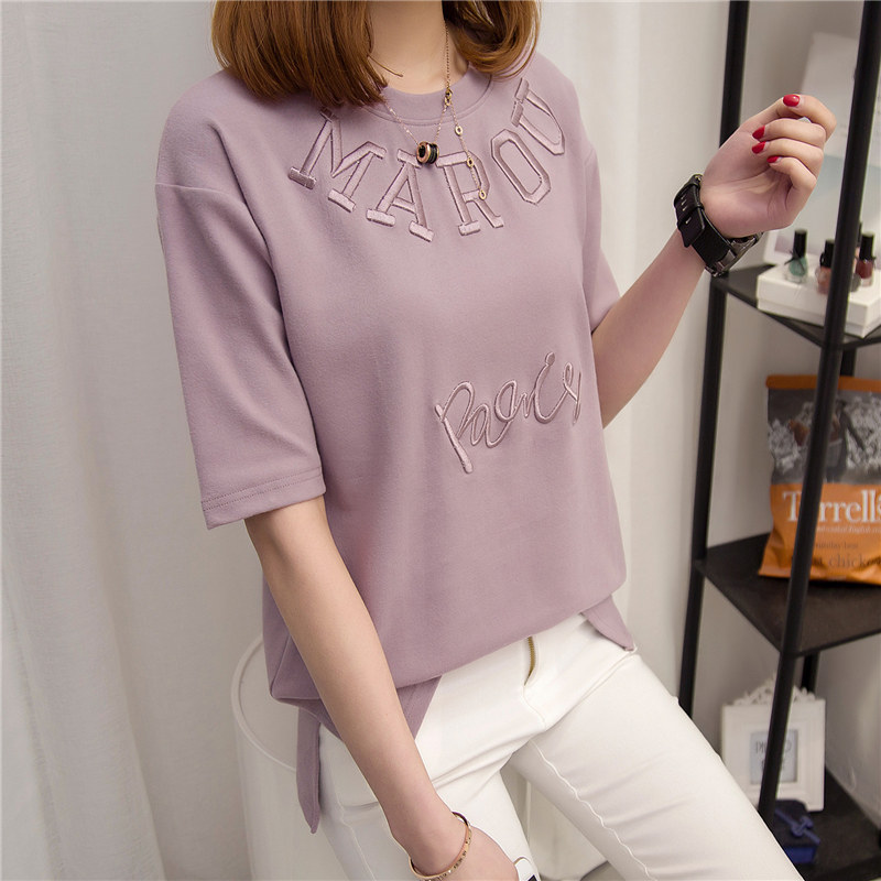 夏裝新款女裝上衣白色短袖t恤女夏寬松刺繡體恤韓版百搭衣服