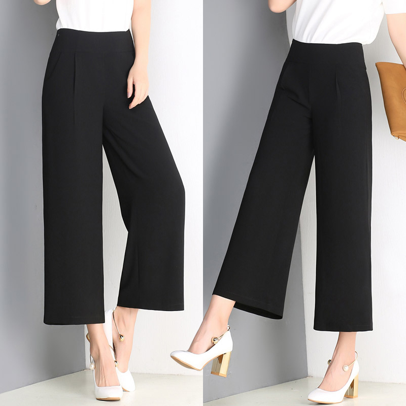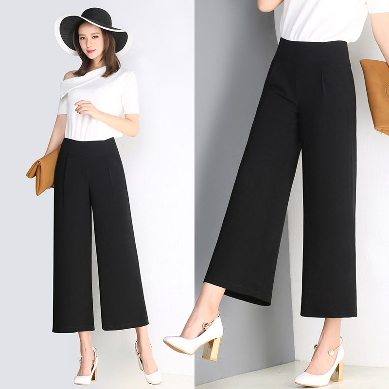 九分闊腿褲夏女高腰韓版學生顯瘦春裝新款潮雪紡直筒七分褲子