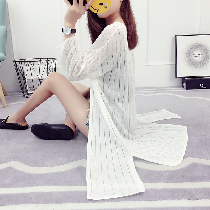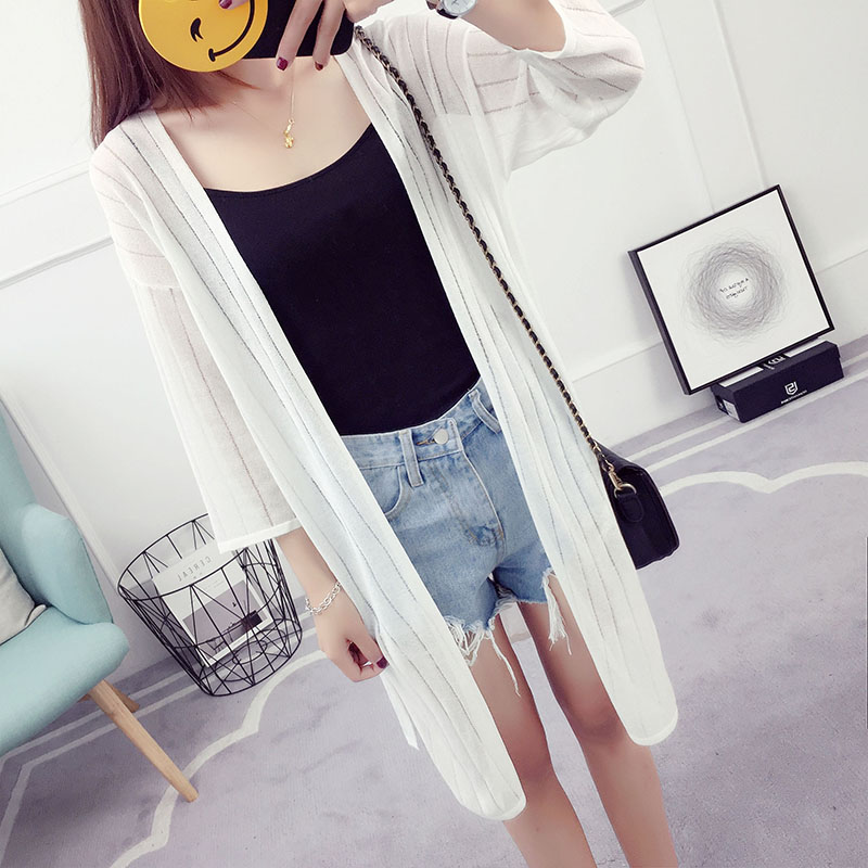 / 冰絲針織開衫女薄款外搭防曬夏季中長款七分袖韓版百搭外套空調衫