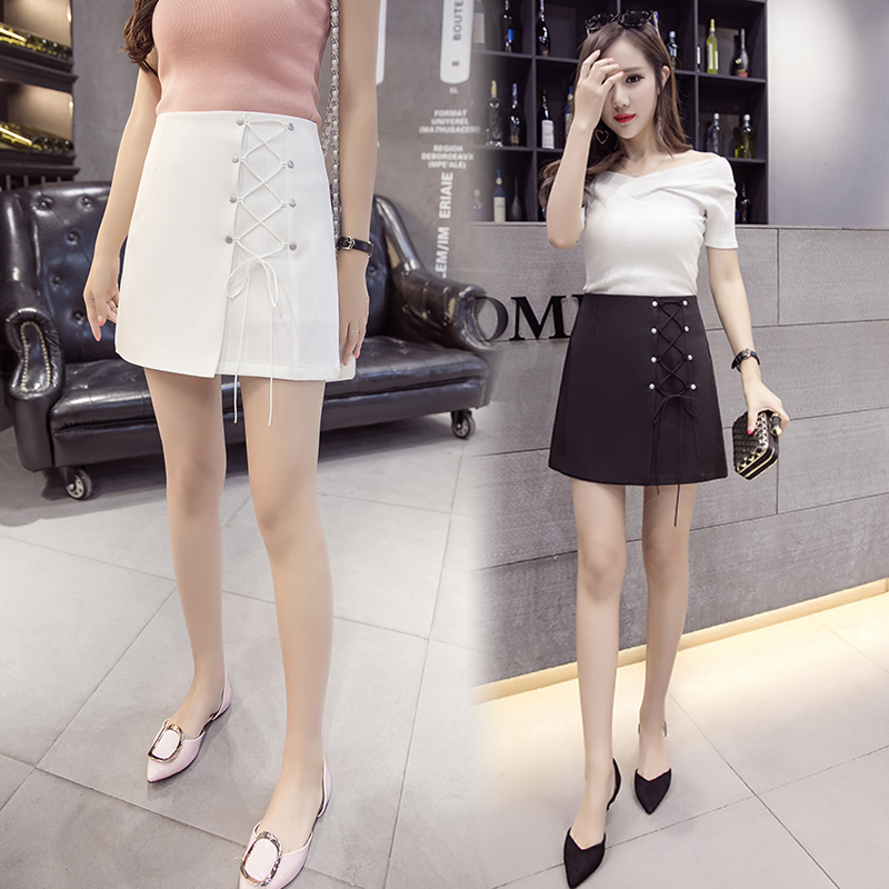 夏韓版高腰A字裙半身裙女綁帶包臀短裙防走光褲裙不規則半裙